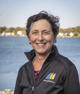 Leigh Shemitz is the President of SoundWaters, where her responsibilities include setting strategic direction, leading fundraising, developing programs, creating partnerships, overseeing operations, and managing the SoundWaters staff and budget.